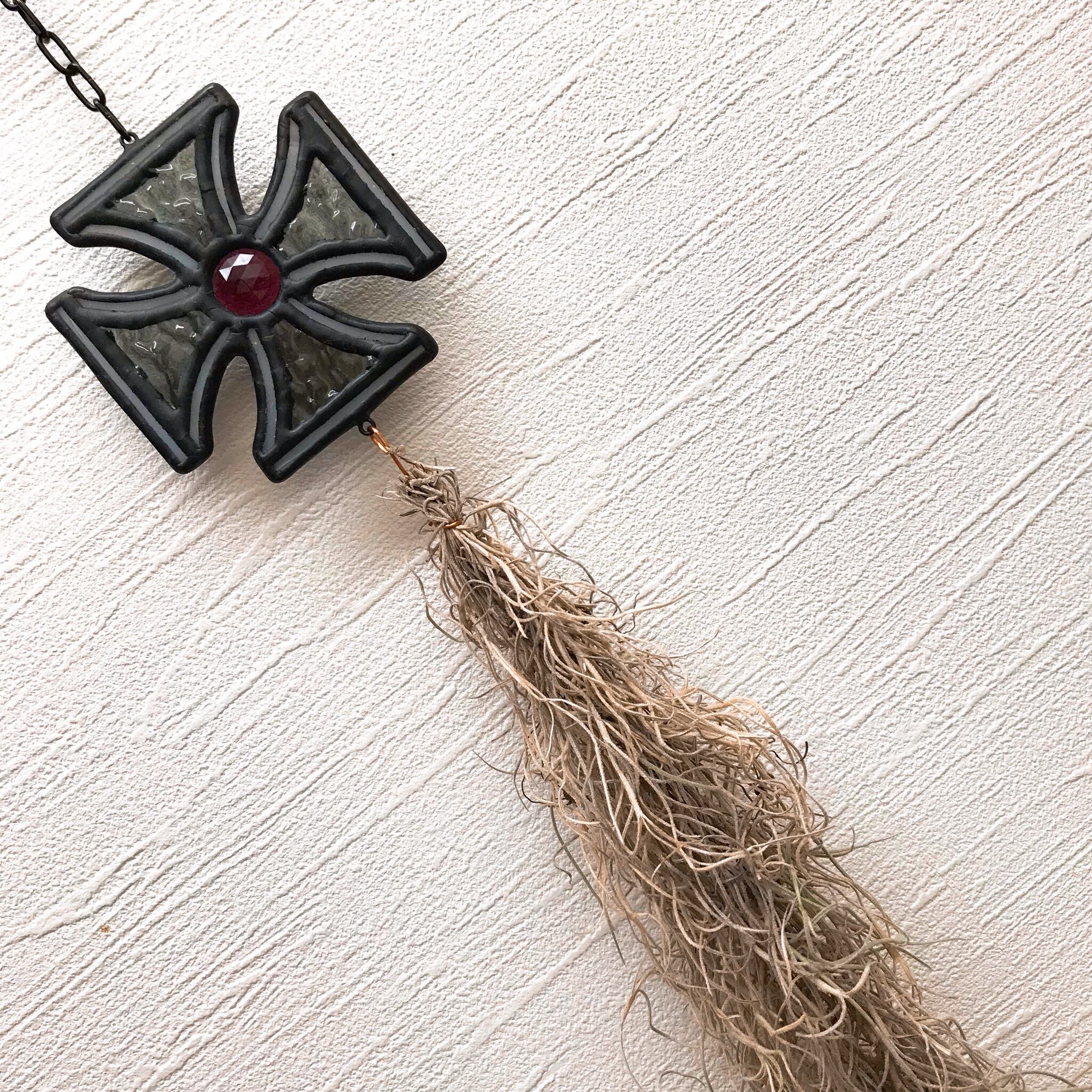 下部分にも丸カンが付いているので画像のようにエアプランツなどを引っ掛けて飾れる仕様となってます。